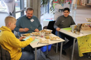 Um diese vielfältigen Eindrücke besser verarbeiten zu können, hatten die Eltern zum Abschluss des Tages die Möglichkeit, in der Mensa bei einem reichhaltigen Buffet, das in diesem Jahr von den Eltern der Klassen 5d und 5e in Koordination mit dem Elternbeirat zusammengestellt wurde, in einen Gedankenaustausch mit anderen Eltern und Lehrkräften zu kommen. Die positiven Rückmeldungen vieler Eltern und der reibungslose Ablauf der Stationenläufe – mit viel Aufwand und Herzblut geplant und organisiert von Stephanie Zigan – sind Zeichen für einen gelungenen „Tag der offenen Tür“ am EWG.