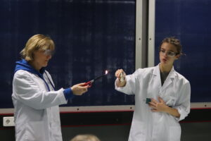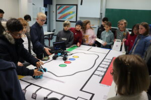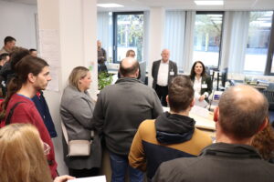 Im Anschluss daran konnten die Eltern und Angehörigen sich selbst ein Bild vom Schulleben und den Räumlichkeiten machen. In von Lehrkräften geführten Gruppen durchliefen sie neun Stationen, die Einblicke in Unterrichtsinhalte (Moderne Fremdsprachen, NWT bzw. neu NIT – Informatik kommt hinzu, Biologie und BK), Schulorganisation (Schulleitung, SMV, Freundeskreis, offene Ganztagesschule) und Ausstattung der Klassen- und Fachräume mit moderner Technik gaben. Das Profil der Schule gewann dadurch an Kontur. Die Sprachzertifikate DELE und DELF in Spanisch und Französisch, das Profilfach BK in der Mittelstufe sowie das Schülermentorenprinzip der Ganztagesbetreuung wurden durch eine lebhafte Vorstellung und den Dialog mit Lehrkräften und Schülerinnen und Schülern unmittelbar fassbar – vielleicht auch eine gute Entscheidungshilfe für die Schulwahl.