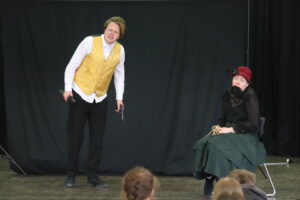 About Time, das Mittelstufenstück, dreht sich um eine dysfunktionale, streitsüchtige Familie. Angelehnt an Dickens‘ Christmas Carol bekommen sie Blicke in Vergangenheit und Zukunft, um herauszufinden, wo die Familienmitglieder falsch abgebogen sind und wie sich die Probleme lösen lassen. Auch hier wird das Publikum immer wieder mit einbezogen und auf die Bühne zitiert.