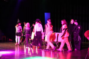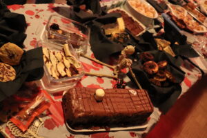 Für weiteres Entertainment des Abends zählt die Zeit nach dem Kostümwettbewerb, als die jungen Schülerinnen und Schüler in der gesamten Aula und sogar auf der Bühne zu stimmungsvoller Musik tanzen konnten. Zwar begann die Party um 18:00 Uhr, aber für die Vorbereitungen, zu der das Schmücken der Aula mit Spinnenweben, Ballons und vielem mehr, das Aufbauen der Stationen, die Bereitstellung von Verpflegung und das Funktionieren der Technik zählen, hatte sich das Helferteam rund um Frau Gubala bereits drei Stunden zuvor getroffen. An dieser Stelle möchte auch ich mich noch bei dem Helferteam für die gute und harmonische Arbeit bedanken!