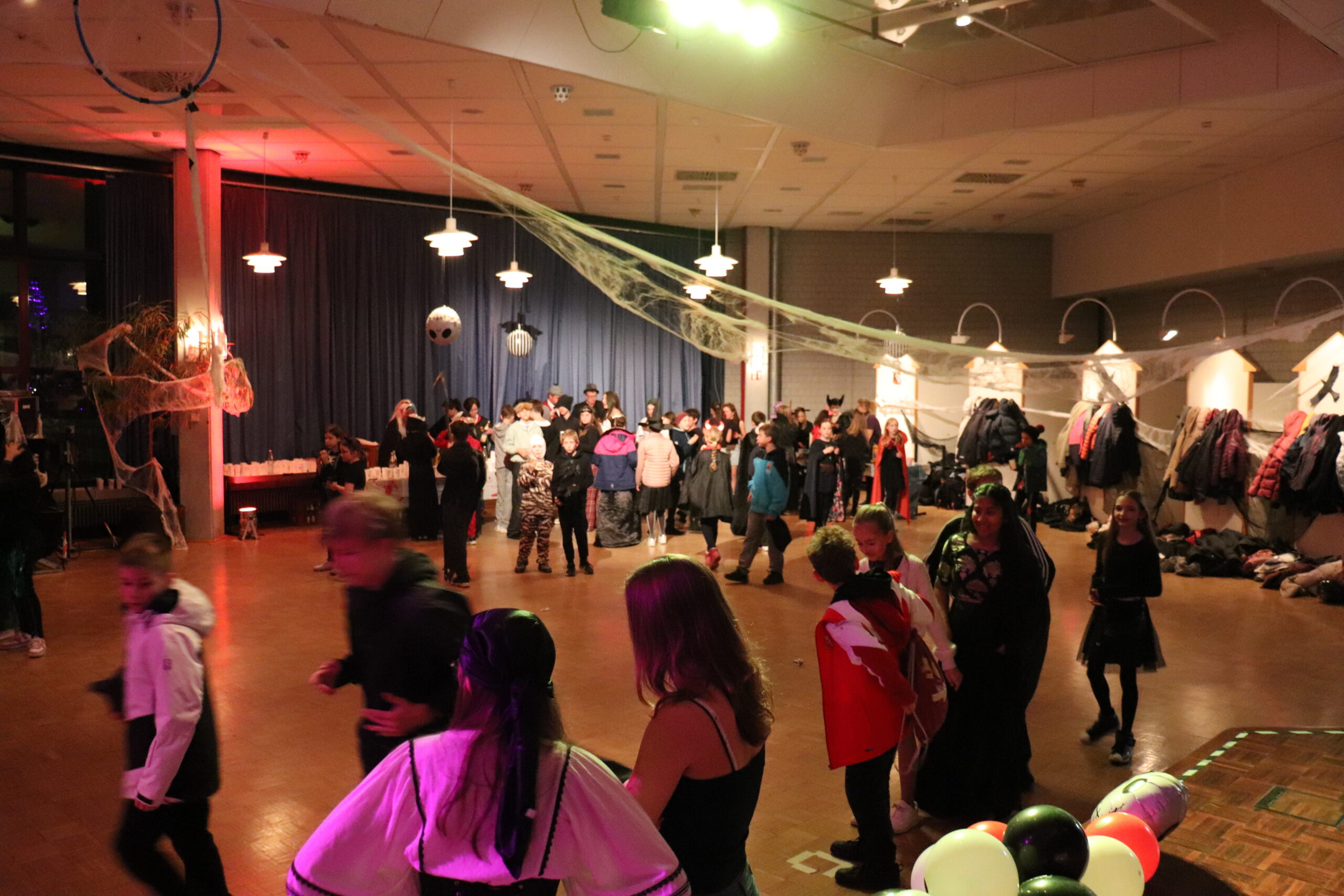 Beim Eintritt bekamen die jungen Schülerinnen und Schüler eine Zahl, die für die Gruppe stand, mit der sie später an zahlreichen Stationen spaßige Spiele wie Limbo oder „Lehrer erraten“ spielten. Nach der Einleitung der SchülersprecherInnen Ida Schilling, Helen Glantz und Pekko Langer ging es auch schon los. Die Partygäste hatten aber nicht nur Spaß an den Stationen, sondern auch die Möglichkeit etwas zu essen und zu trinken. Auf das von Vergnügen, Freude und Lachen geprägte Gruppenprogramm folgte der alljährliche Kostümwettbewerb, bei dem von einer Jury, die aus LehrerInnen, HelferInnen und SchülerInnen bestand, das Kostüm einer Schülerin oder eines Schülers zum besten der Party gekürt wurde.