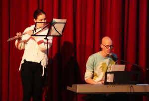 Er blieb dabei nicht nur Physiker und Astronom, sondern bediente Religion – er las aus der Bibel die entscheidenden Abschnitte aus dem Matthäus- und Lukasevangelium vor. Er bewies sich als Übersetzer – denn im griechischen Original sind es nicht „Weise aus dem Morgenland“, sondern Magier, also Sterndeuter. Er bemühte sich als Historiker um die zeitliche Einordnung. Und ganz am Ende war er sogar Musiker – unter der Begleitung seiner Tochter (Querflöte) sang er am E-Piano das Lied „Stern über Bethlehem“.